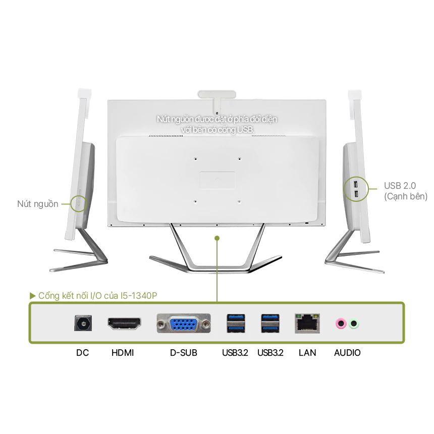 - Đa dạng cổng I/O và VESA để kết nối thiết bị ngoại vi hoặc treo tường.